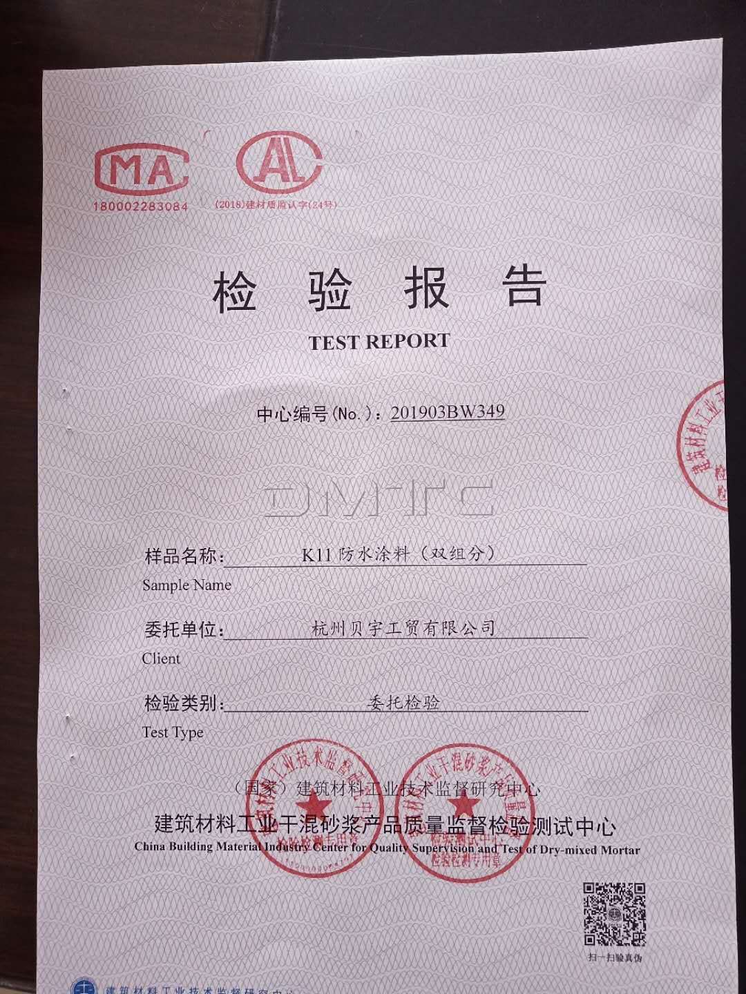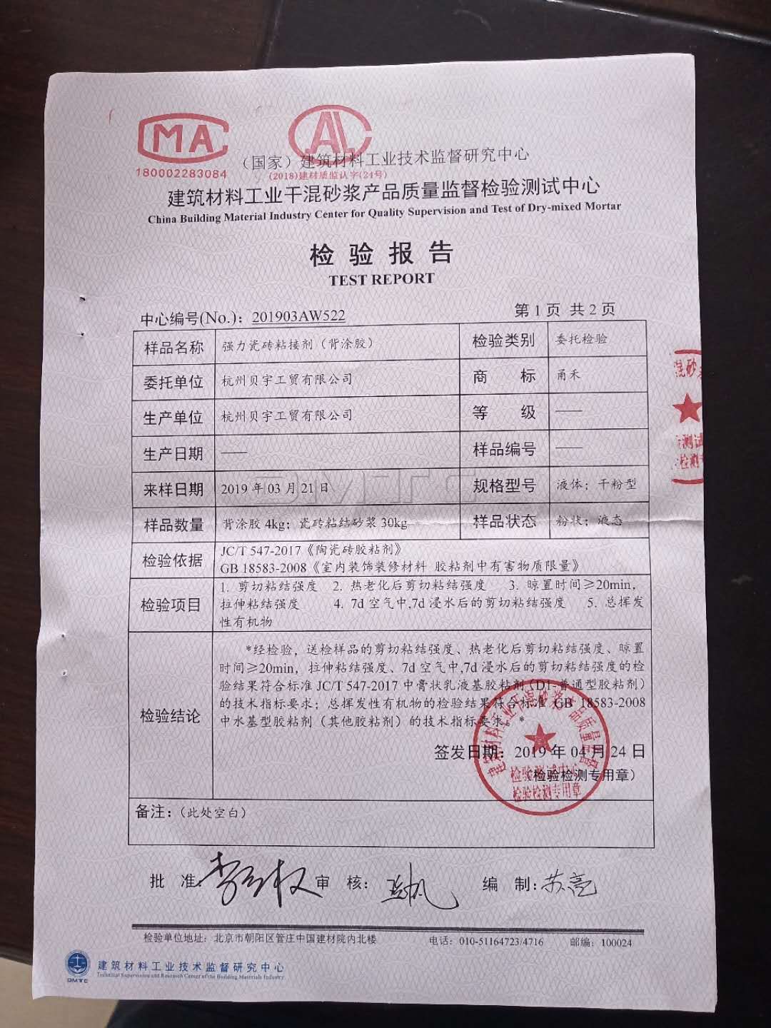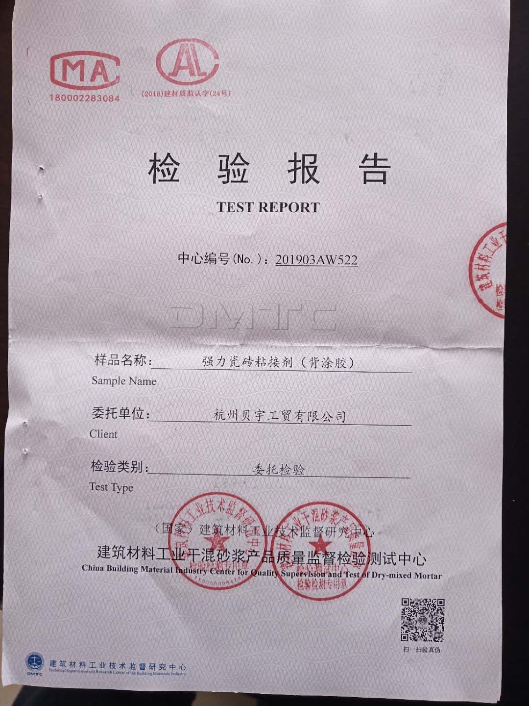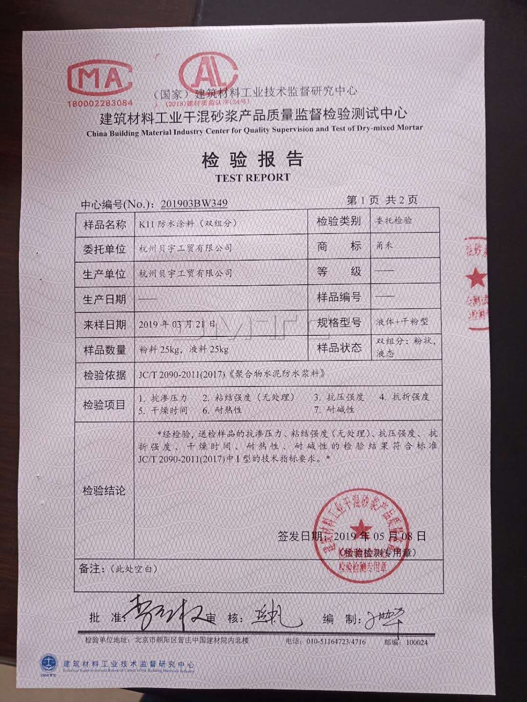 祝賀甬禾防水及背膠通過國家檢測!